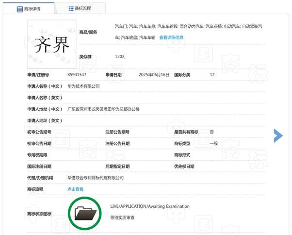 由于“齐界”商标当中带有“界”字,与目前华为鸿蒙智行的品牌名称相似,所以外界也猜测这或许是旗下的又一全新品牌。