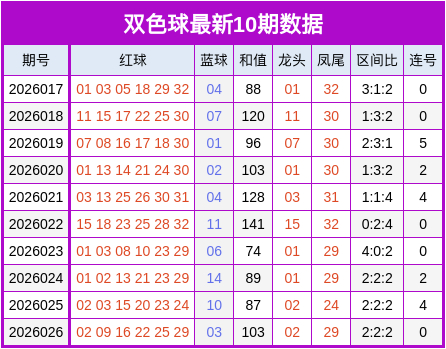 上期开出蓝球号码: 03,区间分析为:一区开出5个,二区开出2个,三区开出2个,四区开出1个,整体1区表现较热。本期蓝球推荐:04。