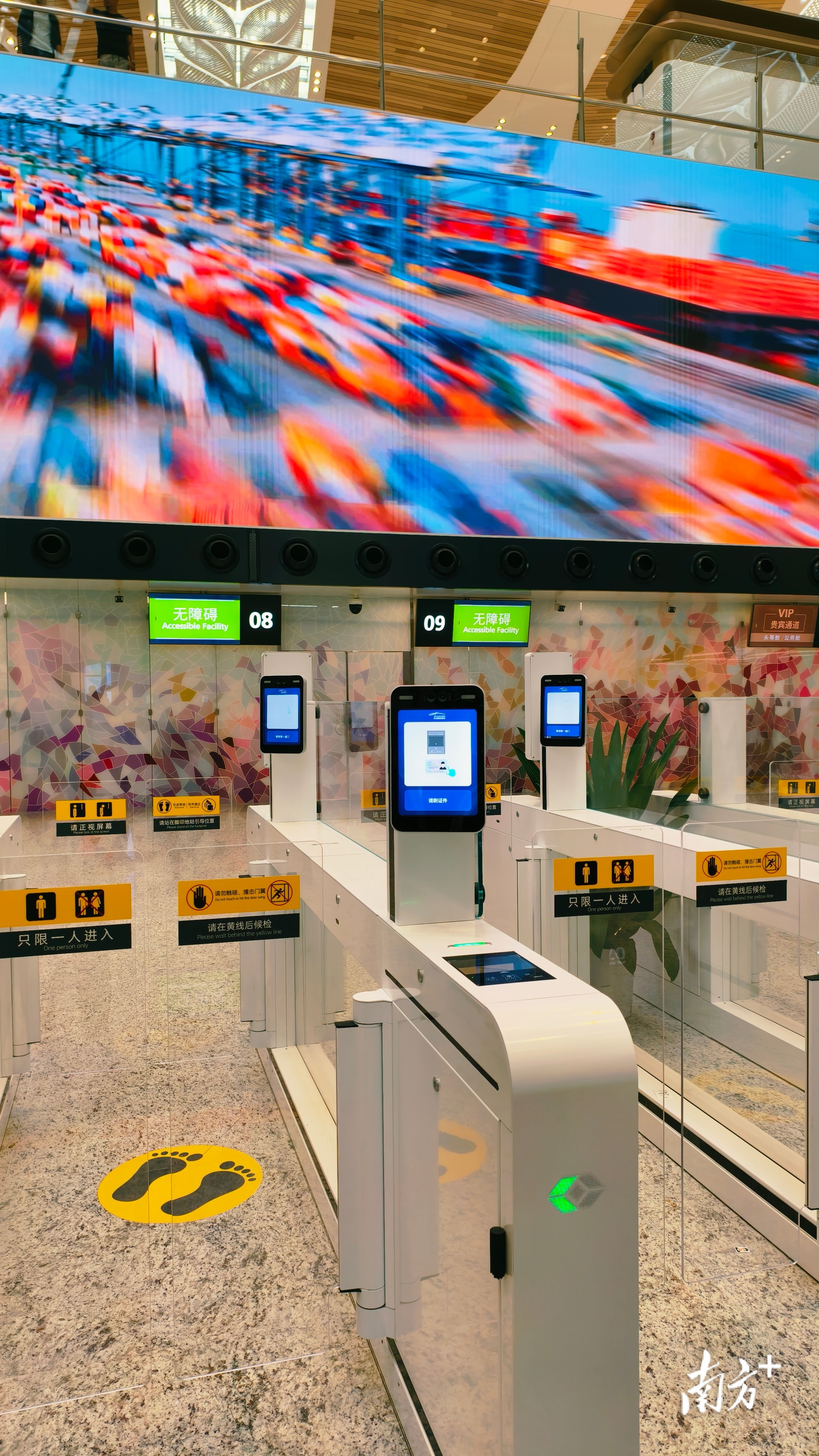 安检效率再提升:设有国内安检通道31条、国际安检通道9条(不含远期规划8条),创新采用“集中安检验证+RFID智能回筐”模式,21台双门自助核验设备每6秒即可完成1次身份核验,误识率低于0.1%,“人-筐-包”精准绑定让安检更有序。