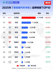 近期,据新加坡陆路交通管理局数据显示,2025年,比亚迪乘用车在新加坡销售11184辆,同比增长80.6%,蝉联年度全品牌销量冠军。自2022年,比亚迪正式进入新加坡乘用车市场,仅用两年时间成功登顶榜首,助力新加坡电动化转型。