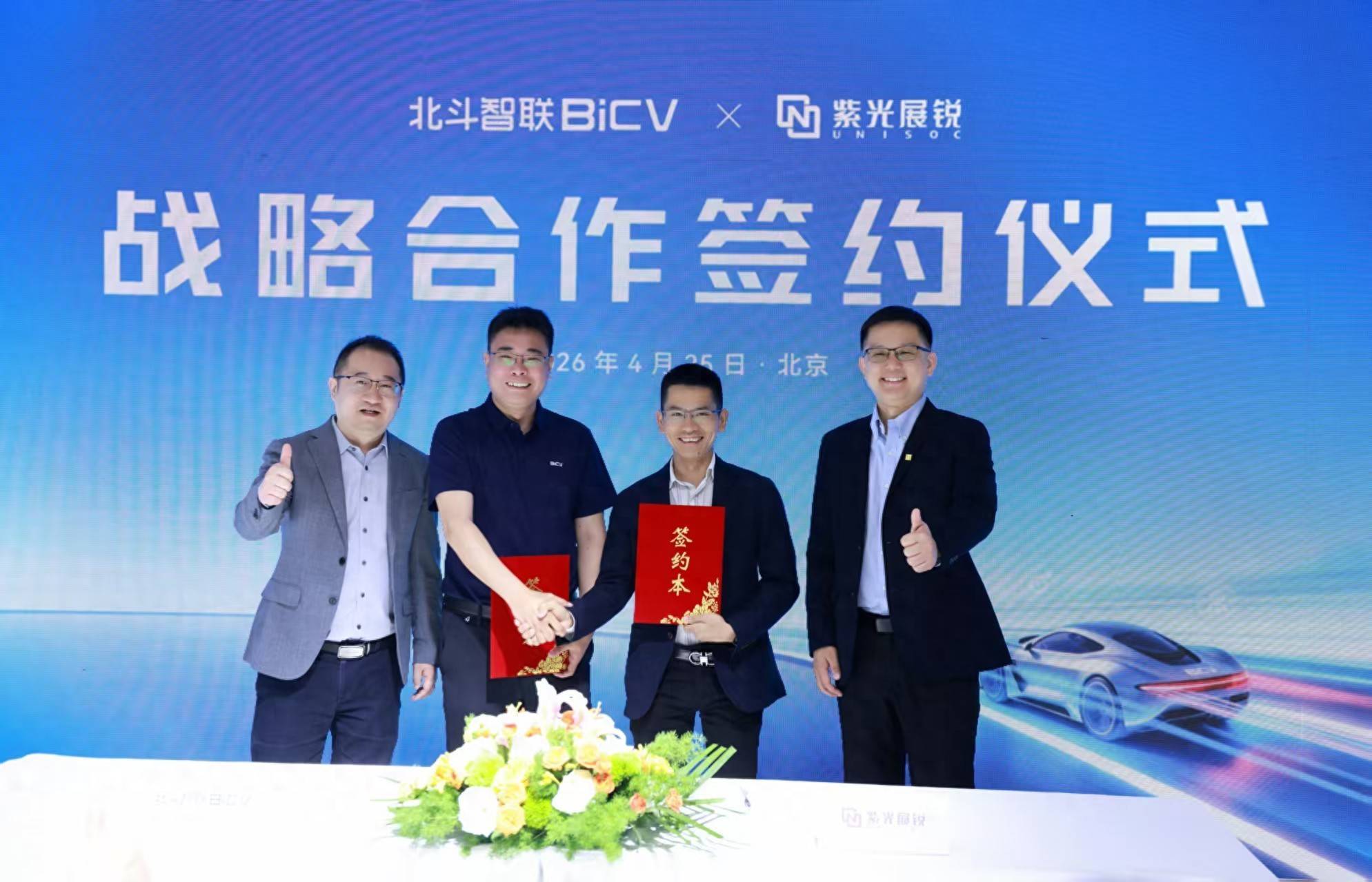 2026年4月25日,在北京车展举办期间,国内领先的智能网联汽车座舱电子与高精度定位解决方案提供商——北斗智联,与知名芯片设计企业紫光展锐正式签署战略合作框架协议。双方将围绕新一代智能座舱SoC平台及先进通信技术,在技术研发、市场拓展与生态共建等多维度展开全面合作,共同推动中国汽车智能座舱产业链的自主化进程与高质量发展。